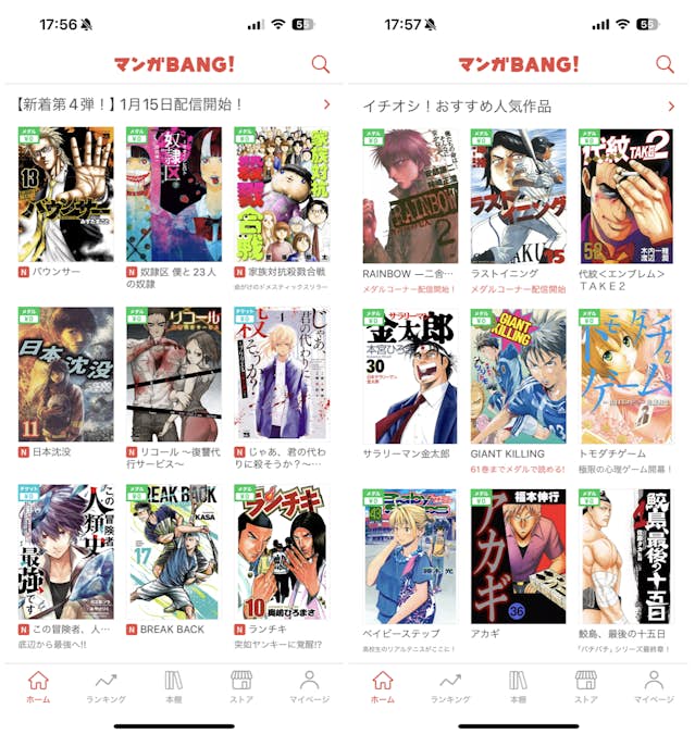 - マンガBang!:高画質で読みやすい電子書籍形式の漫画が楽しめます。